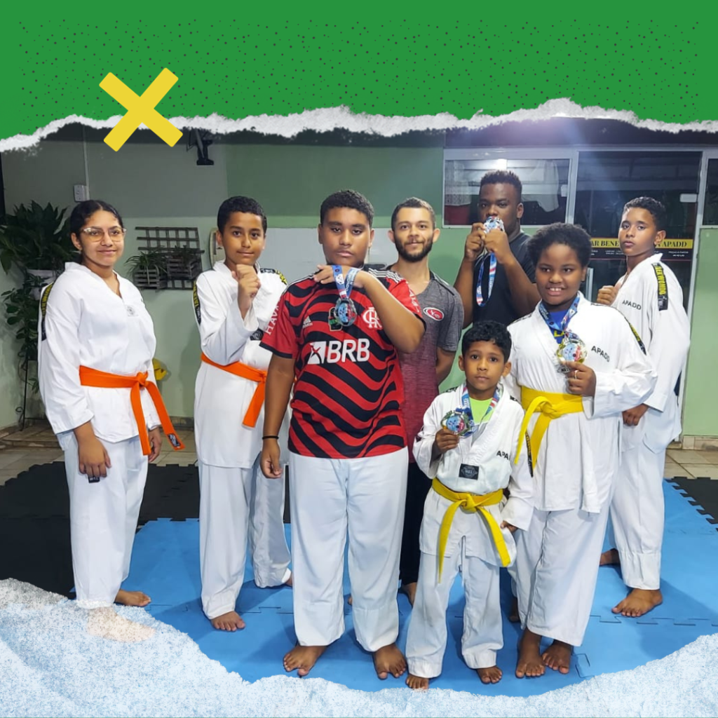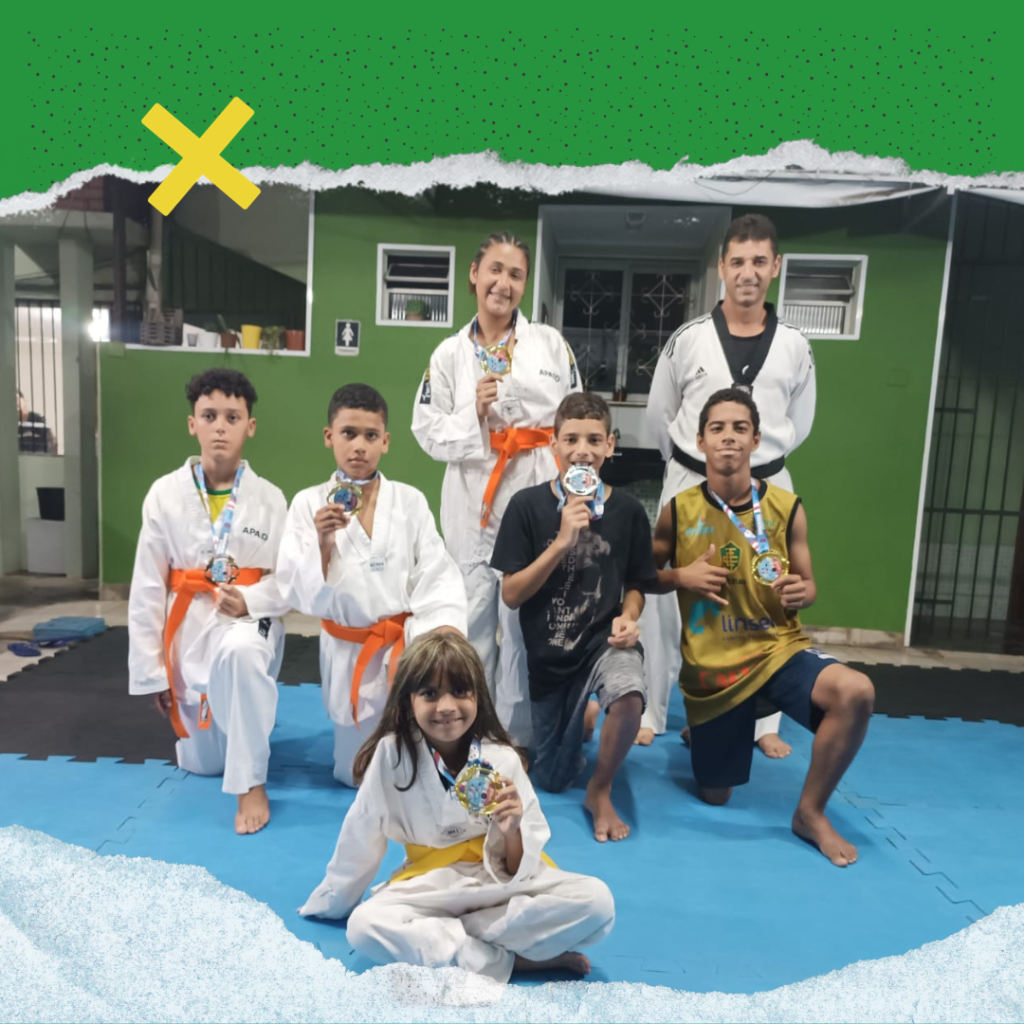 No Primeiro Vila Velha Open de Taekwondo 2023, realizado no Ginásio Tartarugão em 12/11/23, 14 alunos do Projeto “Um Golpe Contra as Drogas” da APADD brilharam intensamente.