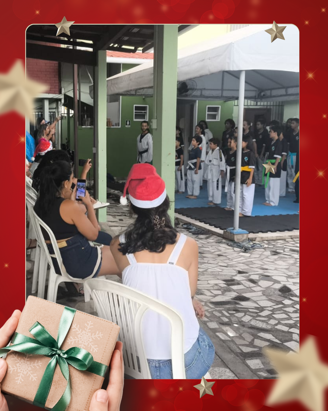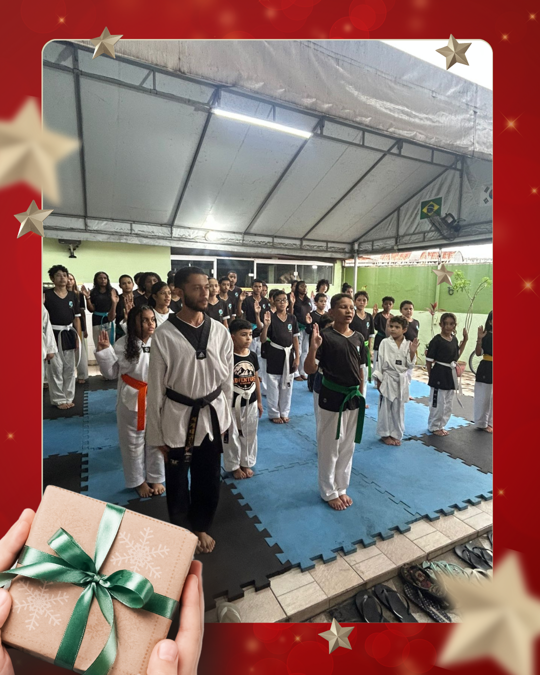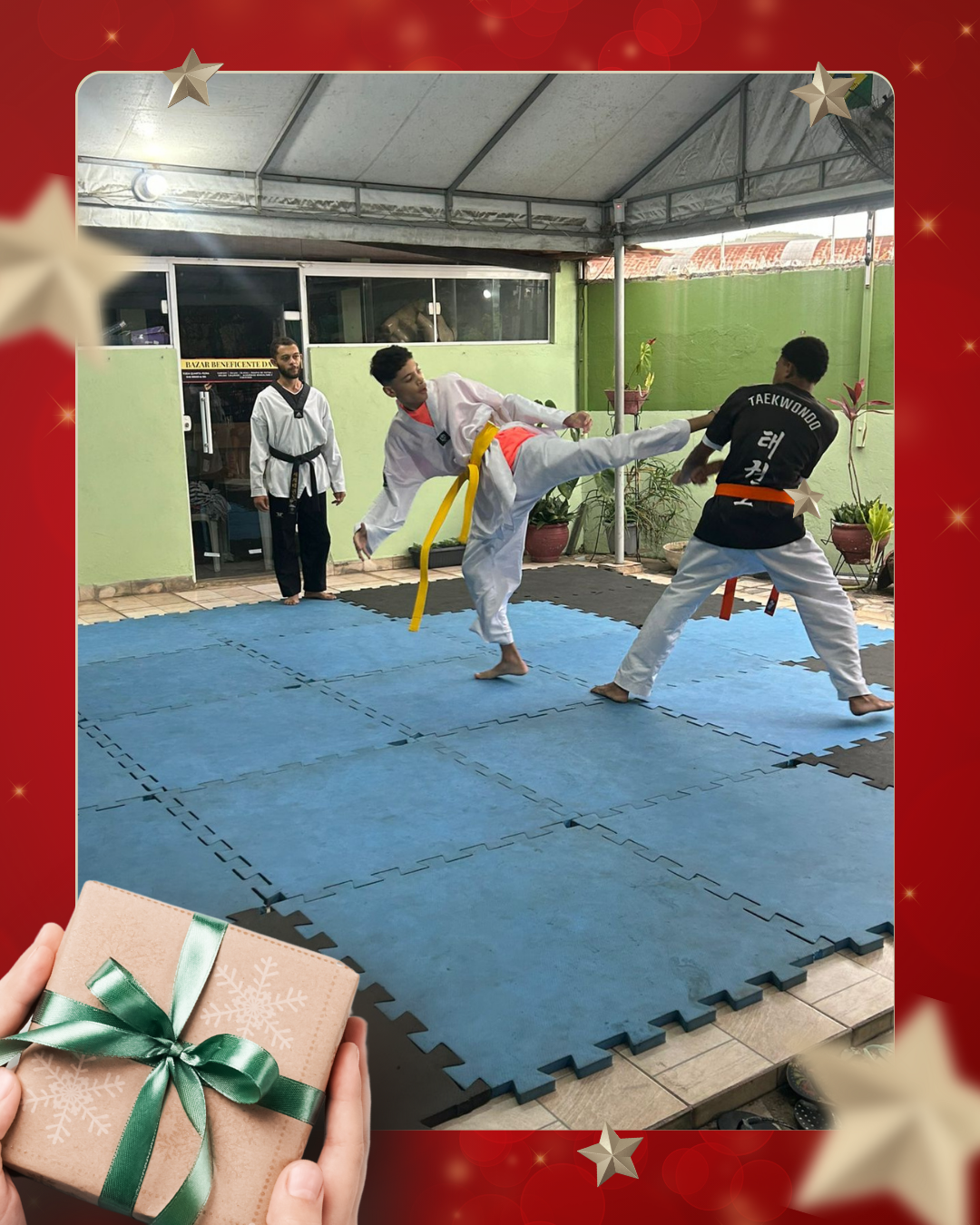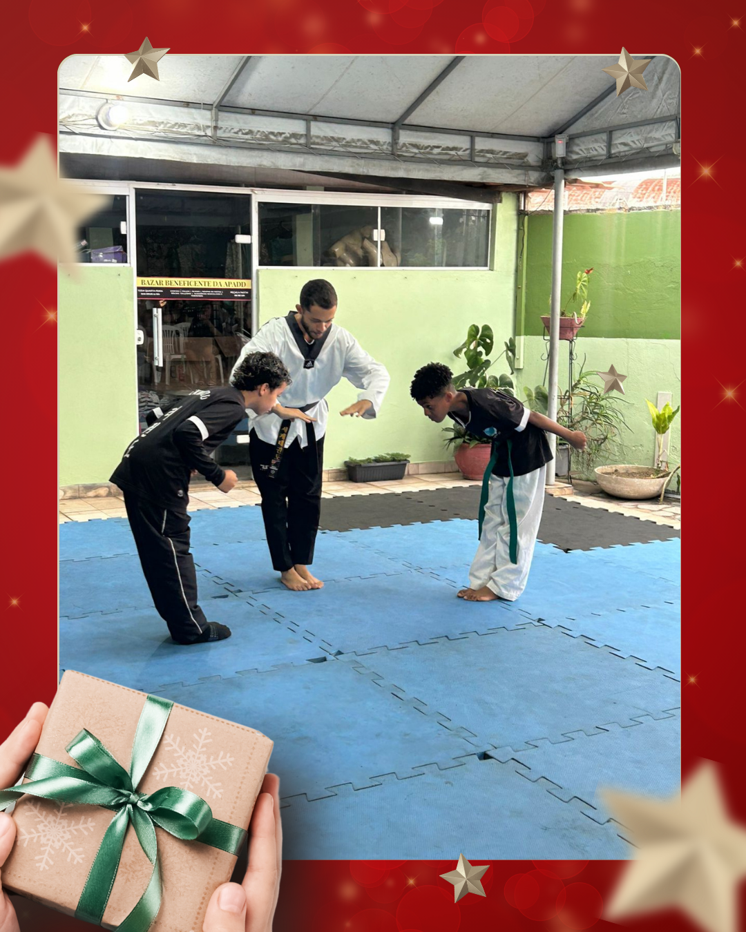 Como forma de agradecimento e de demonstração do trabalho desenvolvido ao longo do ano, a APADD promoveu uma apresentação dos alunos de taekwondo, que realizaram demonstrações de poomsae e técnicas de luta, evidenciando disciplina, respeito e evolução esportiva adquiridos durante as aulas.
