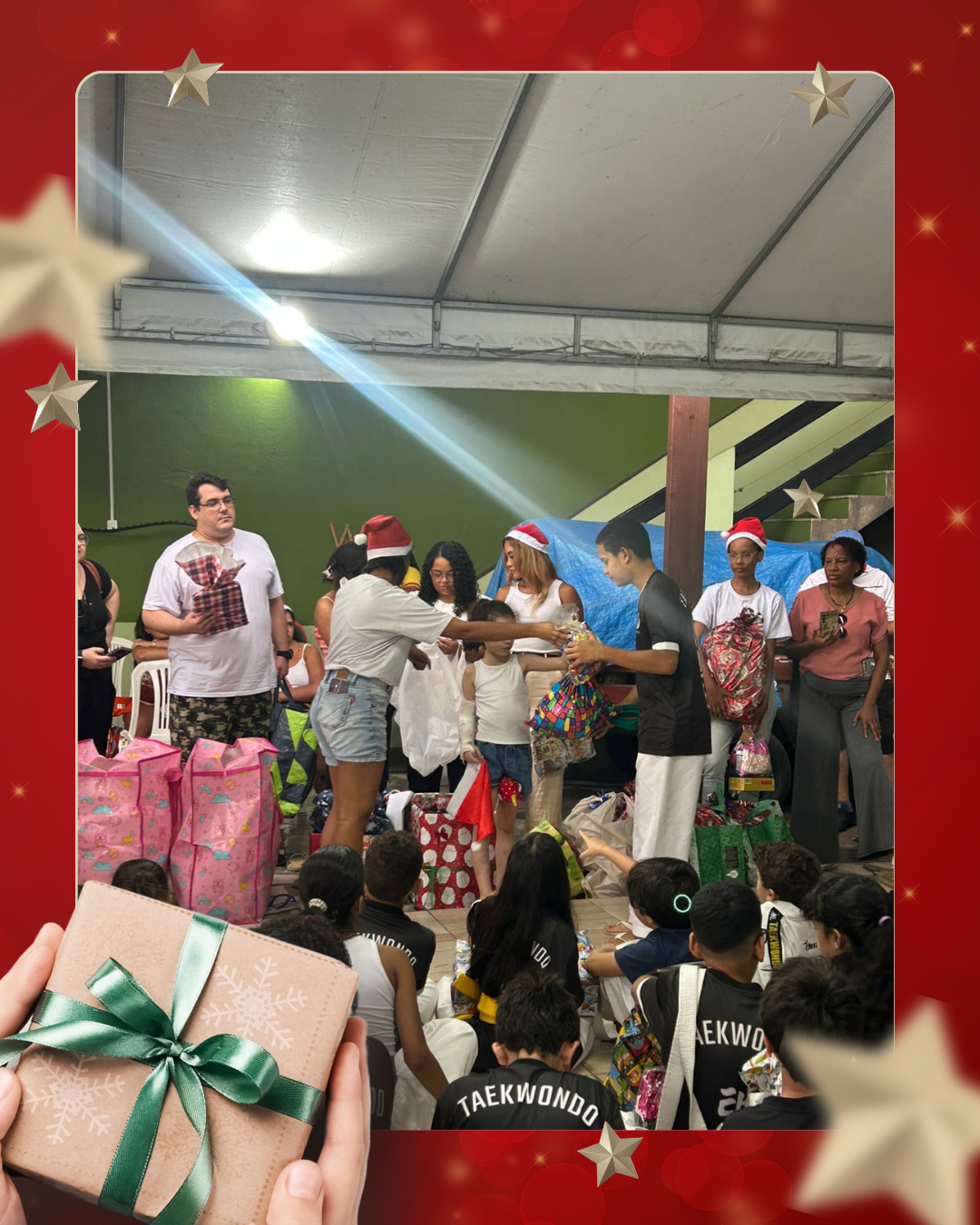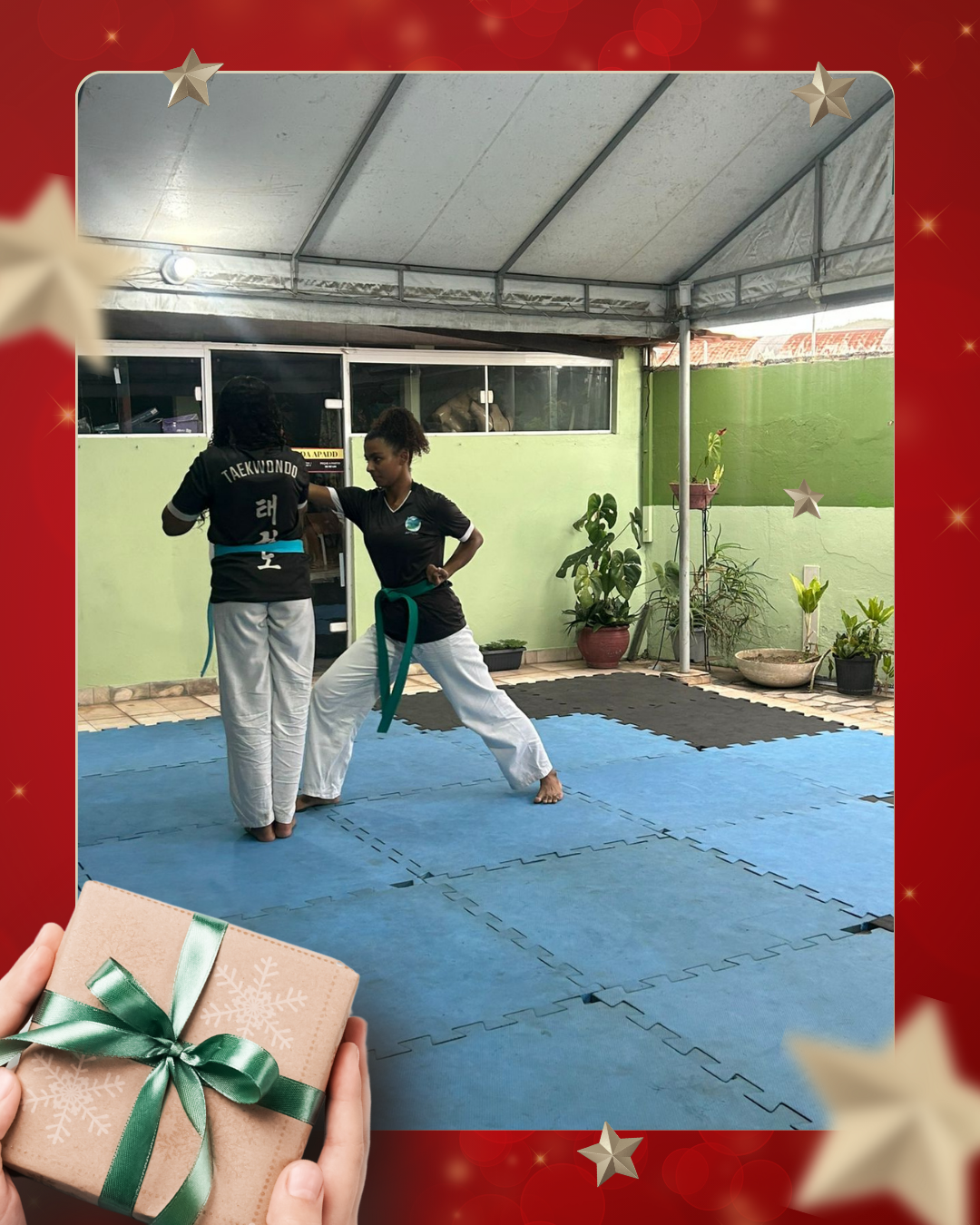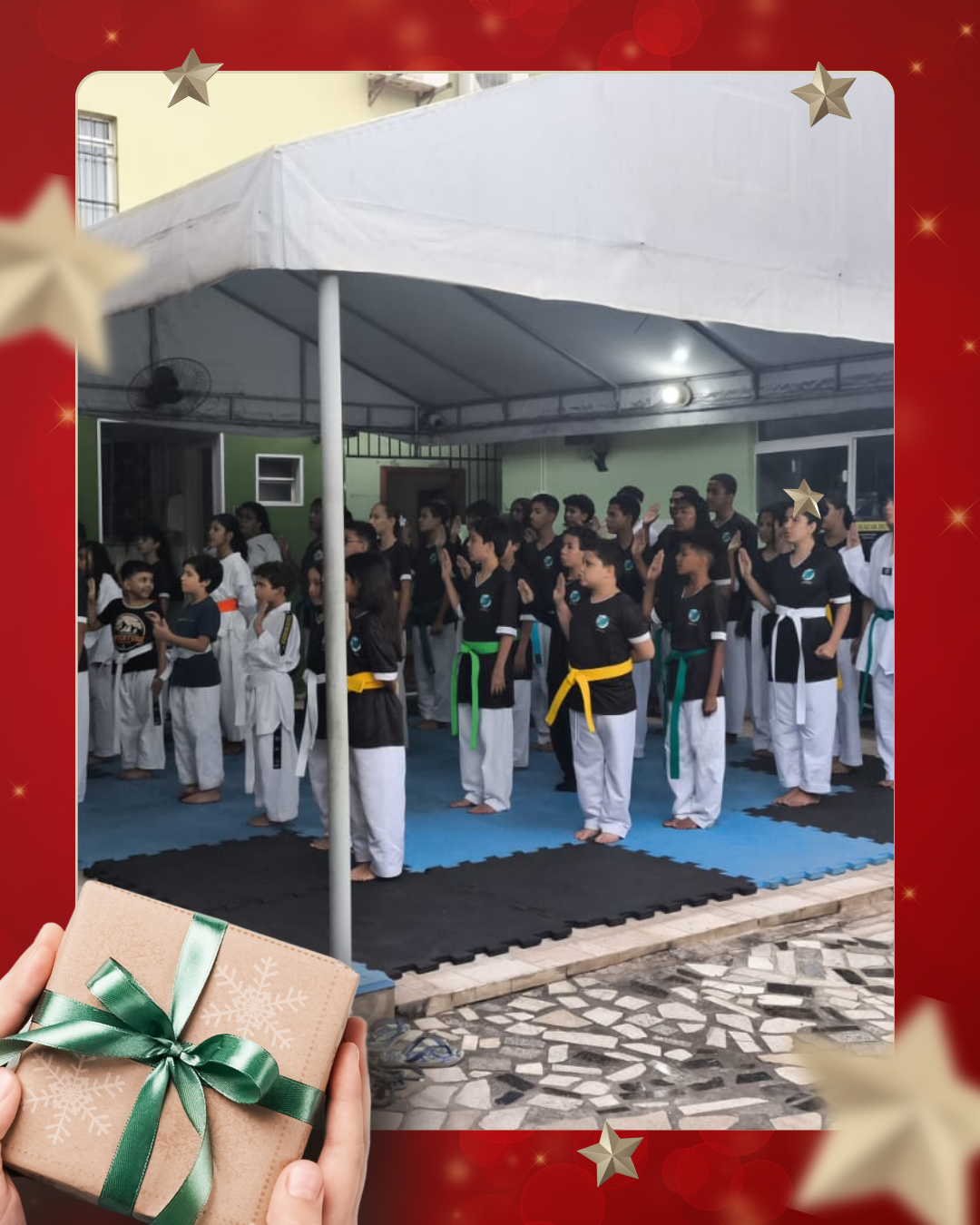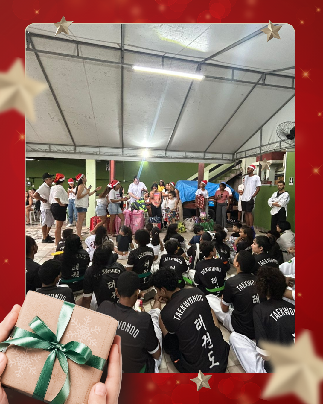 Como forma de agradecimento e de demonstração do trabalho desenvolvido ao longo do ano, a APADD promoveu uma apresentação dos alunos de taekwondo, que realizaram demonstrações de poomsae e técnicas de luta, evidenciando disciplina, respeito e evolução esportiva adquiridos durante as aulas.