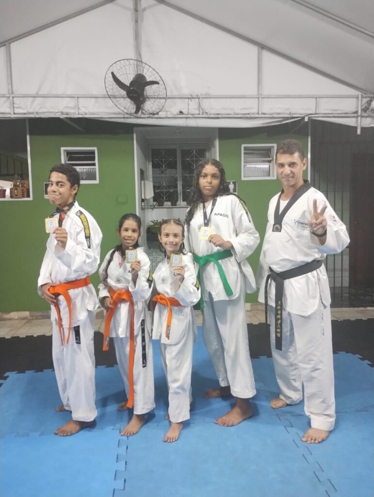No dia 19/05, os alunos do projeto social da APADD, “Um Golpe Contra as Drogas”, brilharam no Campeonato Estadual de Taekwondo 2024, realizado no Ginásio Poliesportivo Paulo Valiate Pimenta em Vitória/ES. Entre os 6 inscritos, 4 conquistaram medalhas de ouro! Daniel Cardoso Gomes, Sara Pereira Barbosa, Bianca Vieira Lima e Lara Vitória Matos Santana ✨