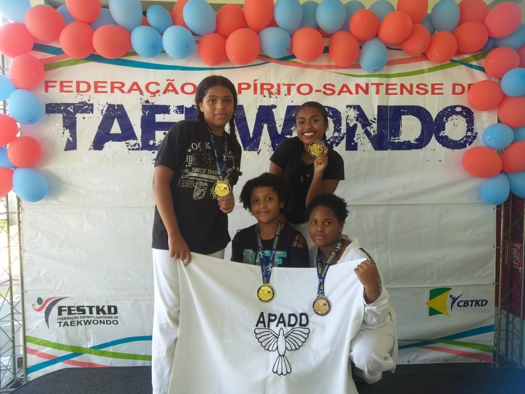 É com imensa satisfação que compartilhamos as conquistas dos talentosos alunos do Projeto Social da APADD, intitulado “Um Golpe Contra as Drogas”. No dia 21 de maio, nossos alunos brilharam intensamente no Campeonato Estadual de Taekwondo, realizado no Ginásio Jones dos Santos Neves, em Vitória.
