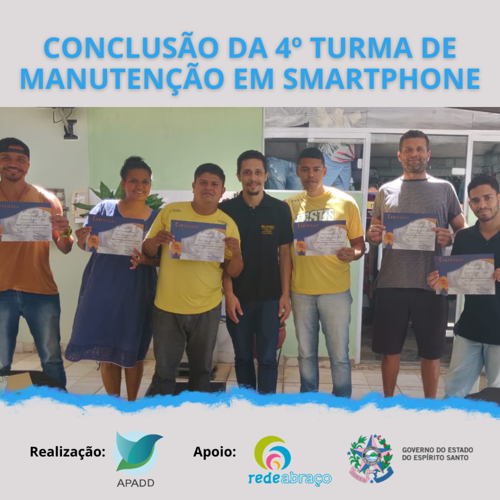 No dia 19 de setembro de 2023, concluímos com sucesso a quarta turma do curso “Manutenção em Smartphones: Do Básico ao Intermediário”. Esta turma se destacou pela sua notável força de vontade e capacidade de superação pessoal. Nossos alunos adquiriram um novo conjunto de habilidades que pode abrir portas para a independência financeira e revitalizar a autoestima.