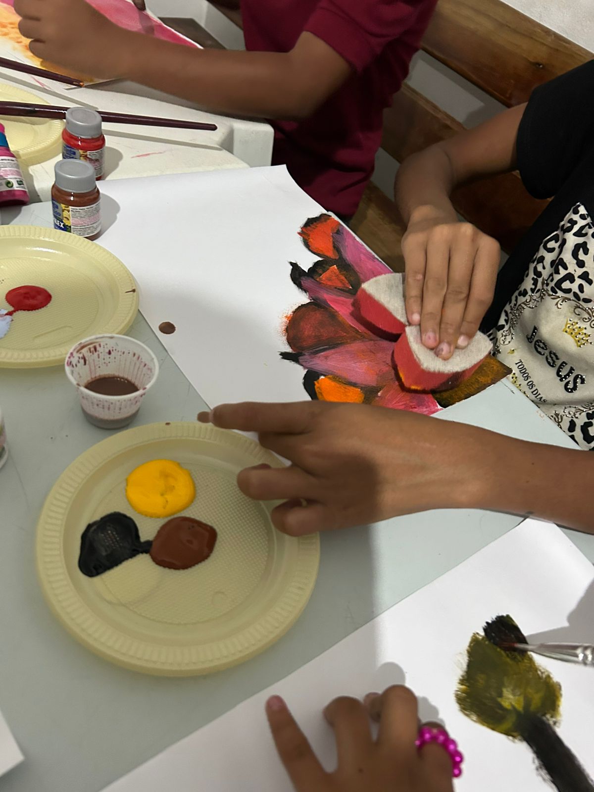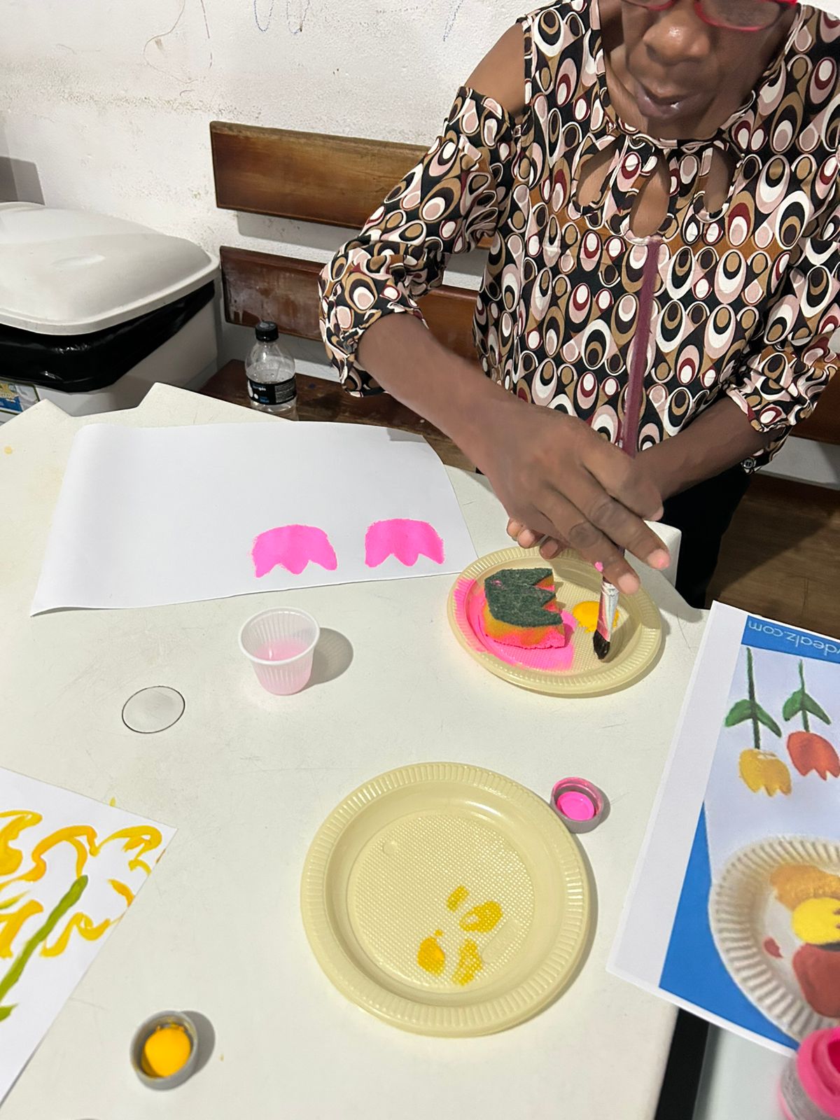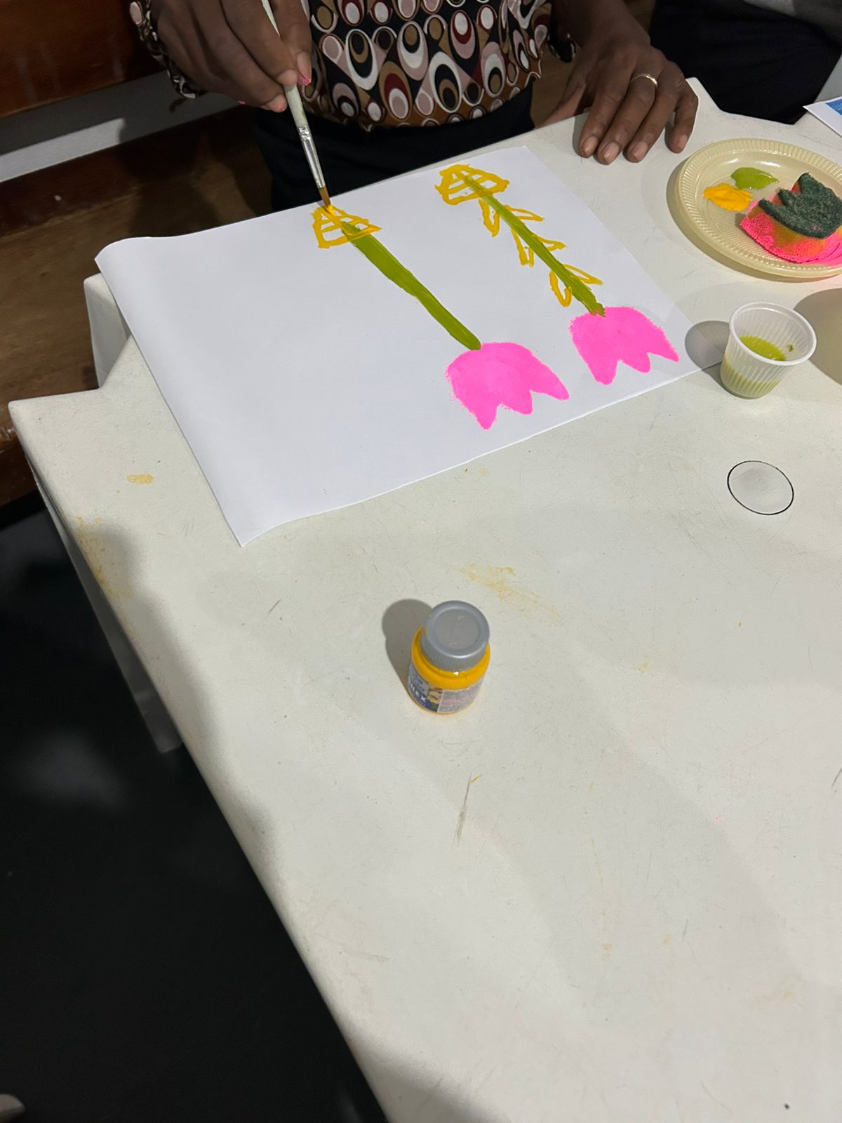A atividade proporcionou aos residentes um espaço de acolhimento e expressão, onde puderam manifestar sentimentos e emoções por meio da pintura com tinta.
