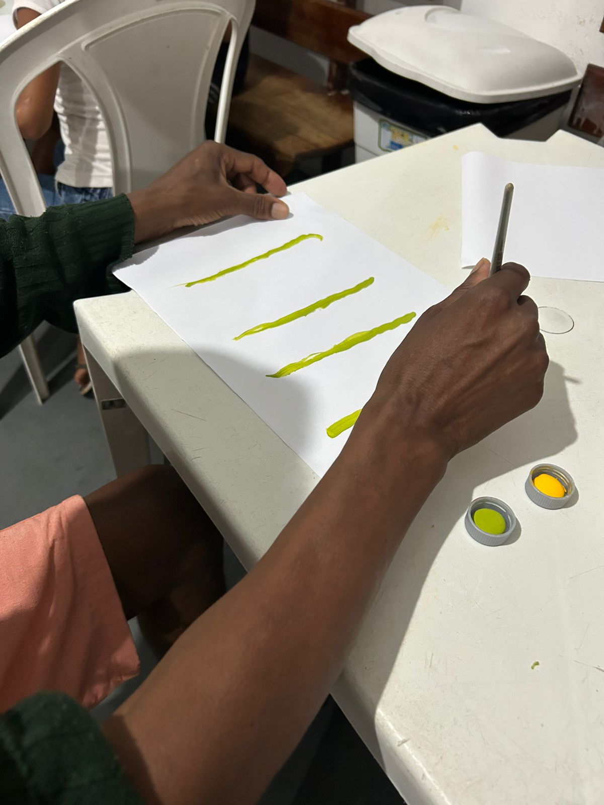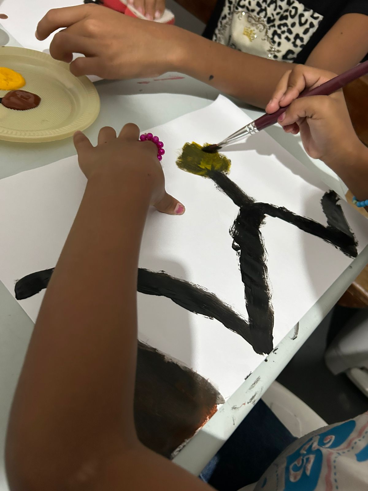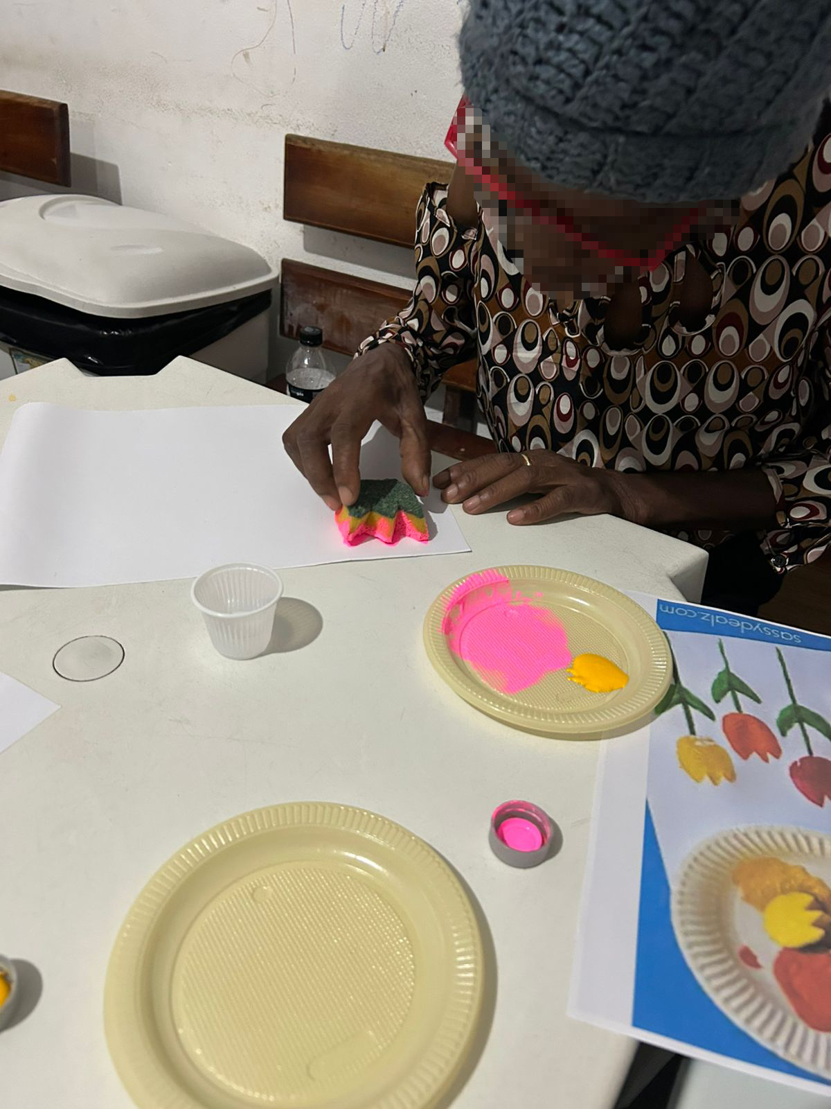 A atividade proporcionou aos residentes um espaço de acolhimento e expressão, onde puderam manifestar sentimentos e emoções por meio da pintura com tinta.