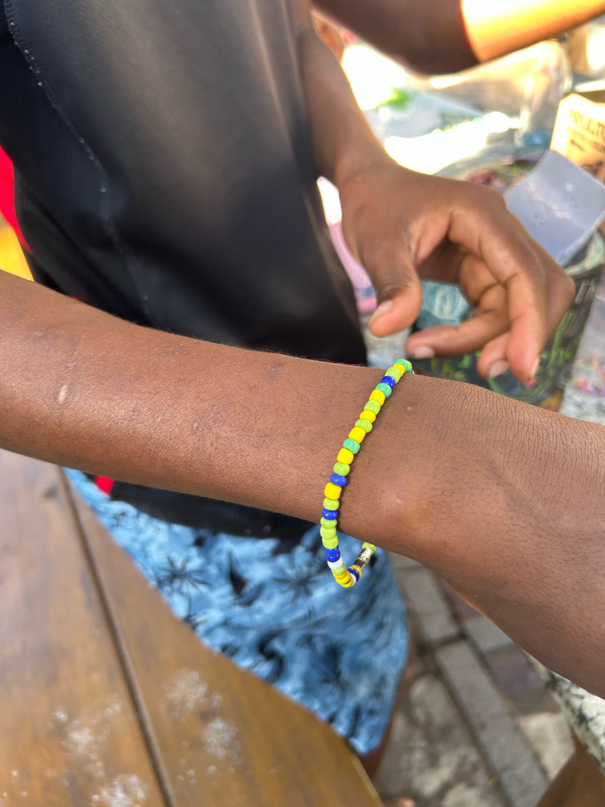 A atividade foi pensada para oferecer às crianças um momento lúdico e educativo, no qual puderam confeccionar cordões e pulseiras, explorando diferentes cores, formatos e combinações.